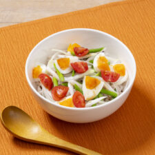 雑穀米と春野菜のカラフルサラダ丼 〜新玉ねぎとアスパラの甘みを雑穀米にのせて〜